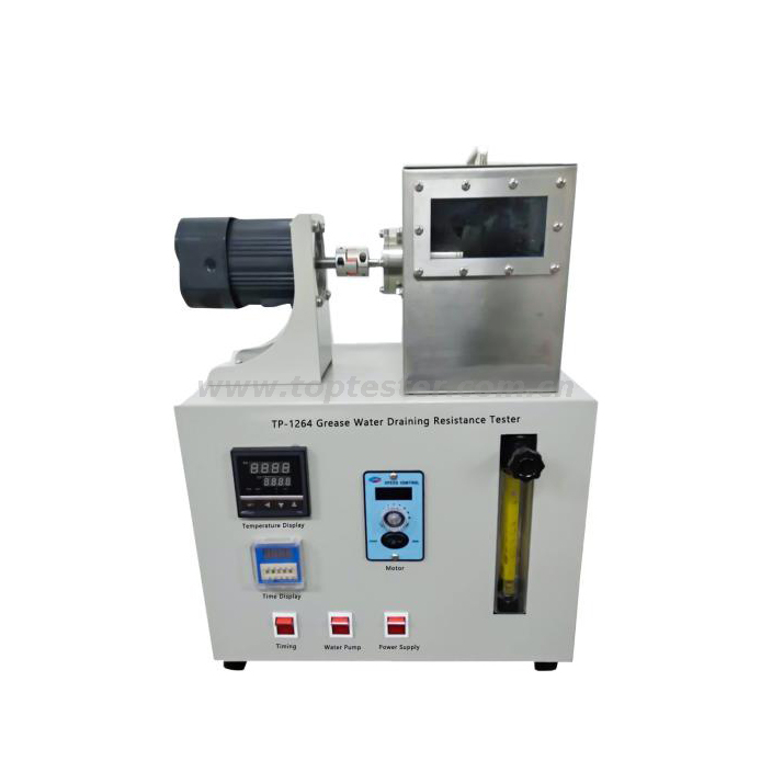 The instrument is to put the grease sample into the ball bearing, then put the ball bearing into the bearing sleeve with specified clearance requirements, and rotate at the speed of 600r/min±30r/min. Spray water controlled at 38°C or 79°C into the bearing sleeve at a speed of 5mL/s ± 0.5 mL/s, and measure the water resistance of the grease sample by the amount of grease washed away by water within 60 minutes Leaching ability.