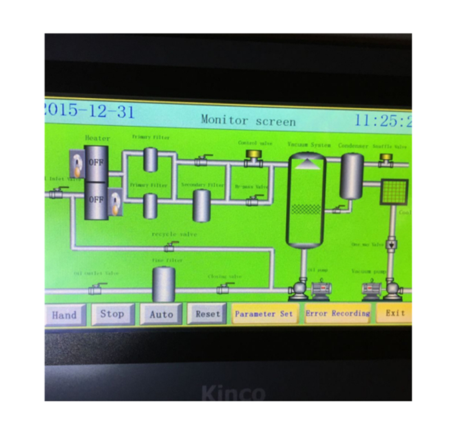 Application COP-A series is of fully automatic operation. It adopts Programmable Logic Controller (P.L.C) to achieve the automation of whole treatment process. Itis mainly used for purifying UCO used cooking oil, vegetable oil, KFC oil, edible oil, rape oil, sesame oil, peanut oil, coconut oil, beam oil, kitchen oil, bio-diesel oil, plant oil, wood oil etc. It dewaters, deodorizes, and eliminates impurities highly effectively. According to the cooking oil nature, the used cooking oil includes high content water, more acid matters, much impurity and offensive odor. This machine adopts plate pressure system and can separate the impurities and water from the oil quickly and effectively. Added two primaries filter and fine filter, it can remove impurities thoroughly. And the machine adopts high vacuum system to dewater and deodorize. In addition, this machine uses stainless steel filter elements, which resists the acid in oil strongly. After the used cooking oil is recycled by machine, it will become clear and fresh.